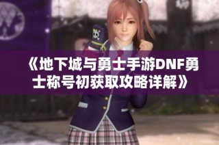《地下城与勇士手游DNF勇士称号初获取攻略详解》